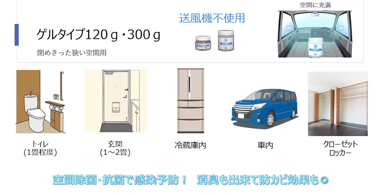 閉め切った狭い空間にはゲルのみでの使用も可能